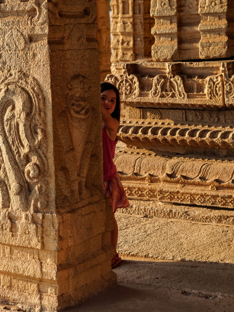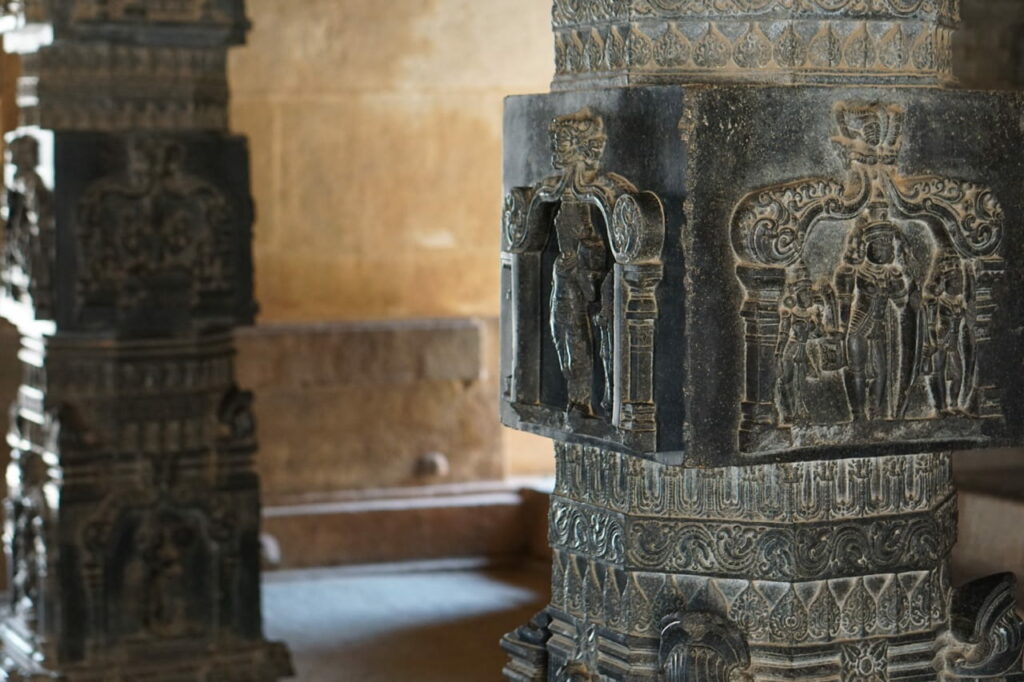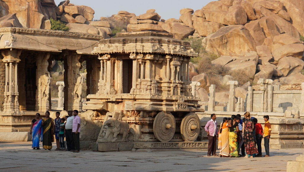 • Le Vittala Temple & son chariot de pierre : Probablement le monument le plus emblématique. Les mandapas musicaux, réputés pour produire des sons cristallins lorsqu’on frappe leurs colonnes, sont un chef-d’œuvre d’ingénierie.