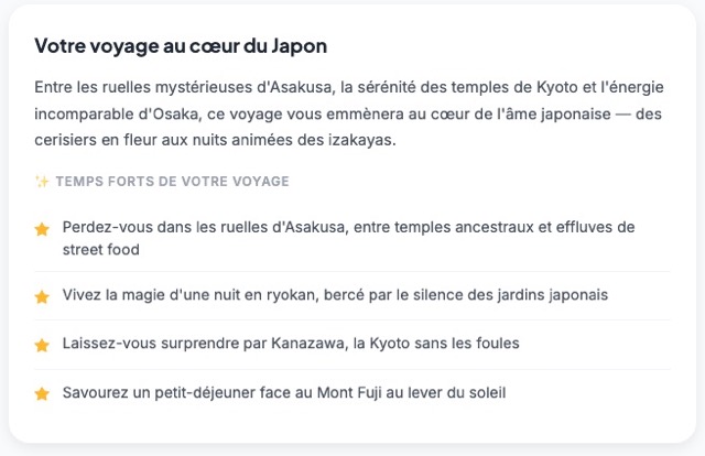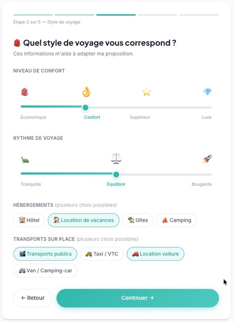 Parce que se projeter dans un voyage doit rester simple, accessible et sans engagement, j’ai travaillé ces dernières semaines sur plusieurs évolutions pour vous faire gagner du temps… et rendre votre expérience encore plus fluide.
